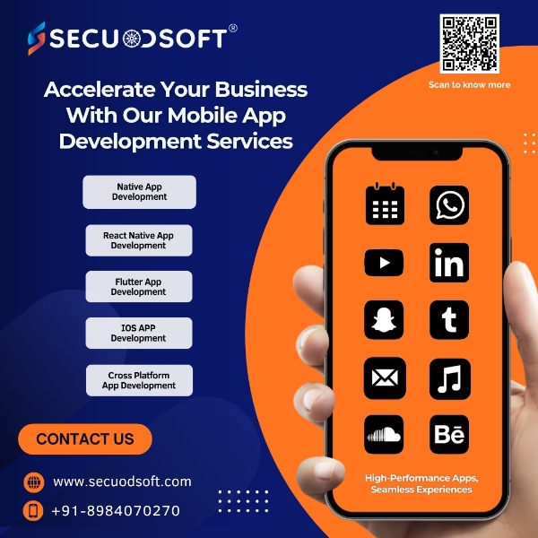 Secuodsoft offers end-to-end Mobile Application Development services to help businesses create high-performance, secure, and user-friendly mobile apps. We build custom applications for Android, iOS, and cross-platform environments with intuitive UI/UX, smooth functionality, and scalable architecture. From concept and design to development, testing, and deployment, our team follows agile practices to ensure timely delivery and optimal performance. With a focus on innovation, usability, and data security, Secuodsoft helps businesses enhance customer engagement, streamline operations, and grow in the mobile-first digital landscape.
